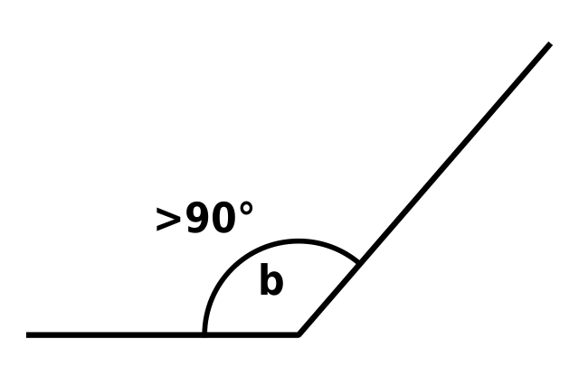 Any angle which is greater than 90 degrees (90°) but less than 180 degrees (180°) is called an obtuse angle. Obtuse angles are larger than right angles. Look at the obtuse angles below.