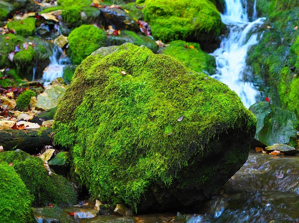 Mosses, like the ones growing on these rocks reproduce by releasing spores.