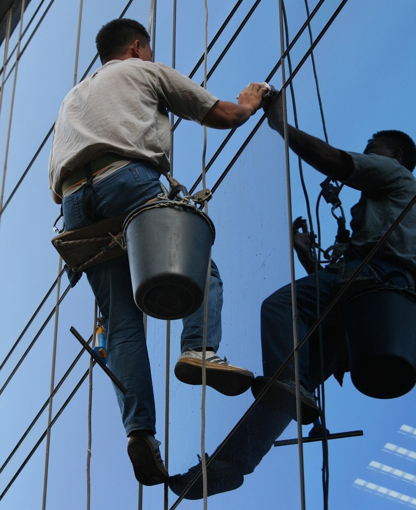 Specular of reflection can produce clear images like the reflection we see when we look in a mirror. In the picture below, specular reflection in the glass on the building gives us a clear image of the worker.